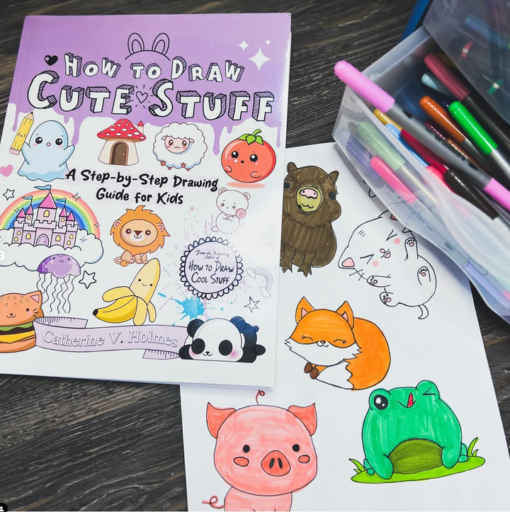 Spark your child’s creativity with How to Draw Cute Stuff, the perfect step-by-step guide for kids ages 6 to 11! This fun and engaging book makes it easy to draw pandas, pizzas, aliens, and more—turning simple shapes into charming creations.